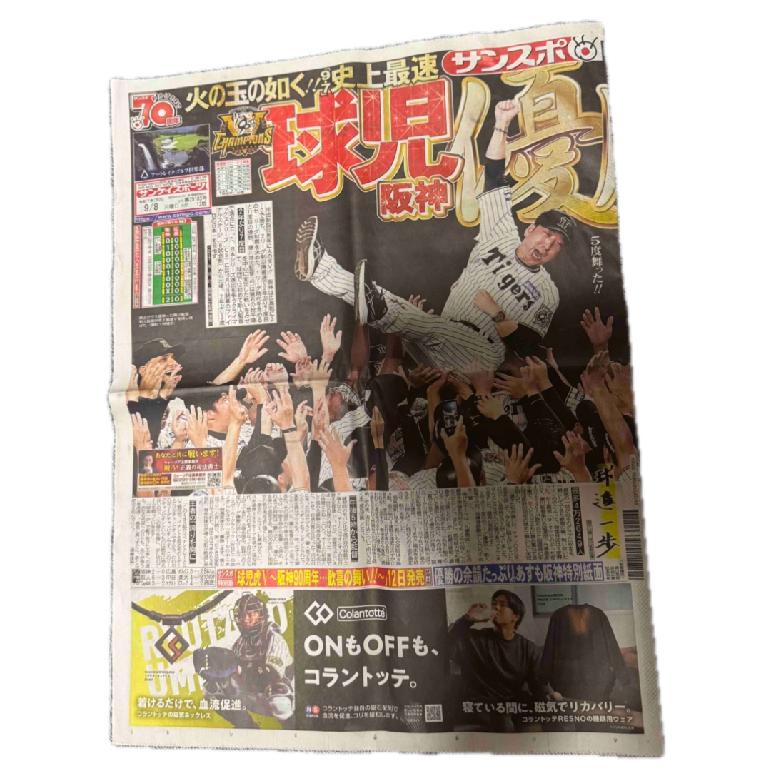 - 阪神タイガース優勝 2025年 9月 8日 サンケイスポーツ新聞 新品 ! 。
