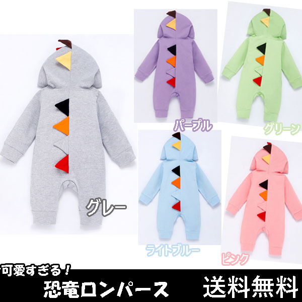 - ロンパース カバーオール 恐竜 フード付 帽子 怪獣 出産祝い プレゼント 長袖 子供服 ベビー服 ベビー キッズ 女の子 赤ちゃん 男の子