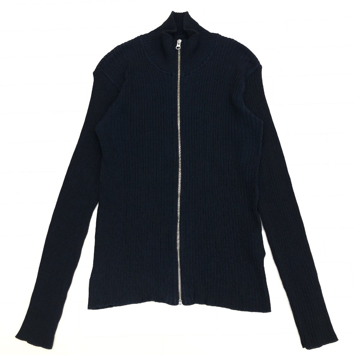> ●美品 hiromichi nakano ヒロミチナカノ モックネック ジップアップ コットン ニット ジャケット L 濃紺 カーディガン 日本製 メンズ 紳士