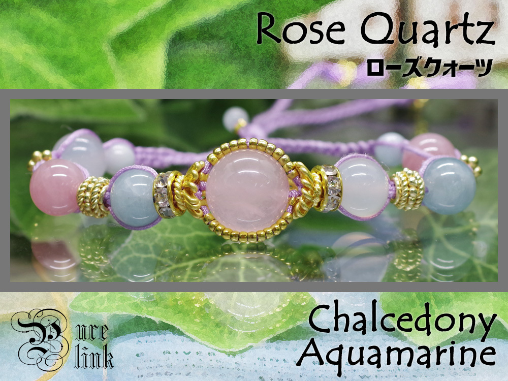- 『ローズクォーツ/アクアマリン/カルセドニー』パステル編ブレス《天然石/ハンドメイド》