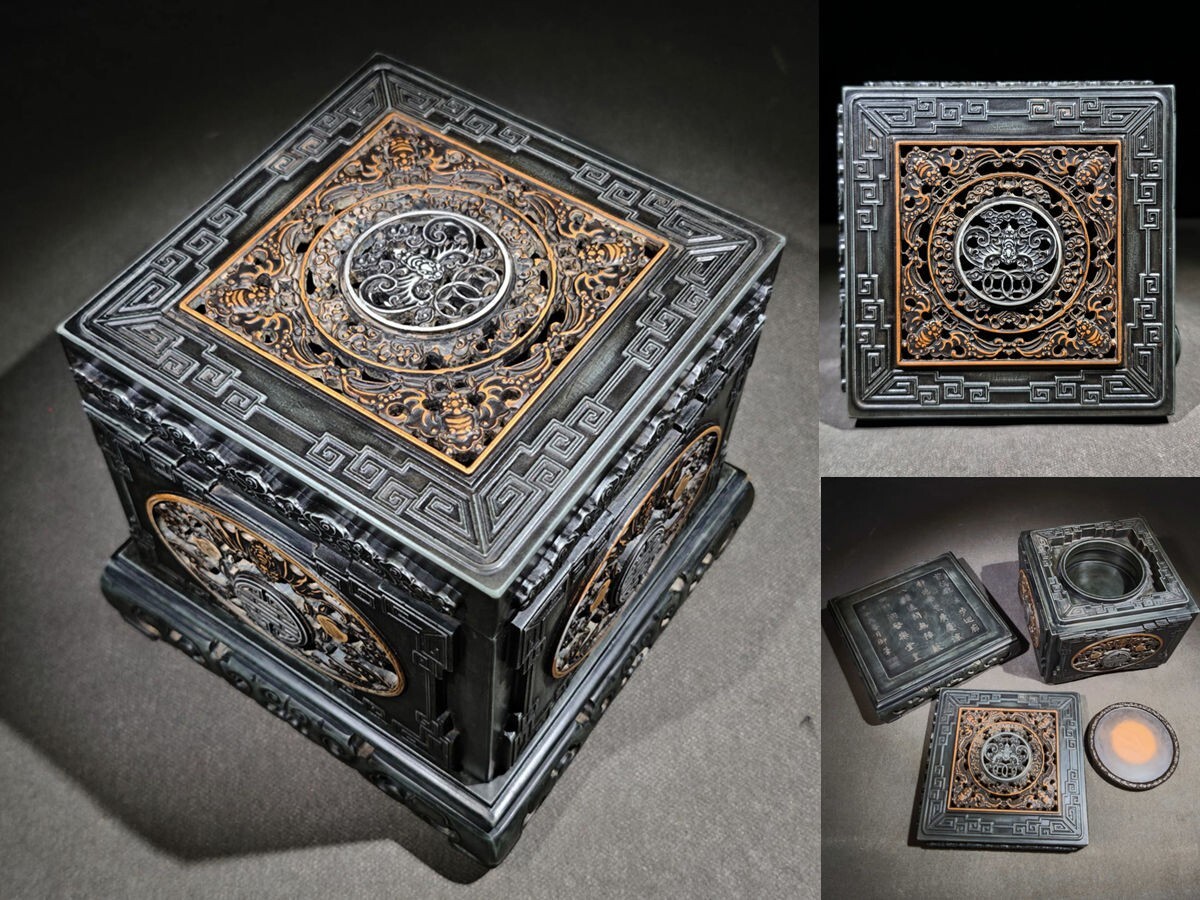 - 【瓏】松花石彫 福壽双全文房暖硯 嘉慶宸翰銘 清時代 手彫り 文房四寶 書道具 中国古硯 古美術 蔵出