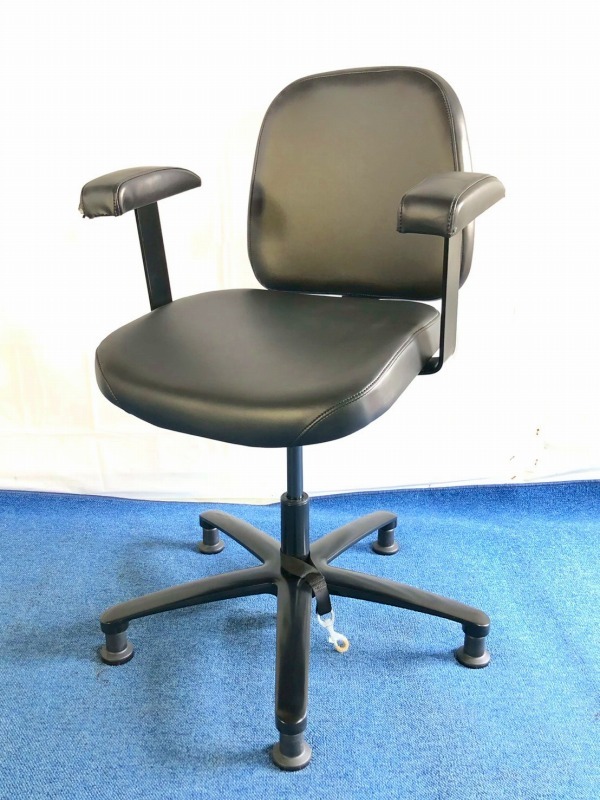 - 【米軍放出品】未使用品 ワークチェア オフィスチェア デスクチェア 椅子 イス 肘付 ブラック 安全ベルト付き (220) ☆BI12CK-W#25