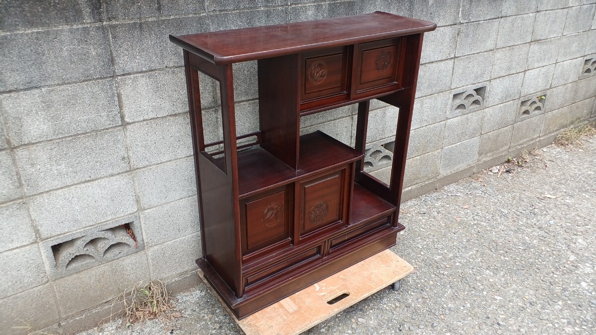 - 飾り棚 昭和 レトロ 木製 古民具 戸棚 違い棚 収納 アンティーク 家具 和室 座敷 茶の間 引き戸 引き出し 彫刻 箪笥 八王子市 引き取りOK
