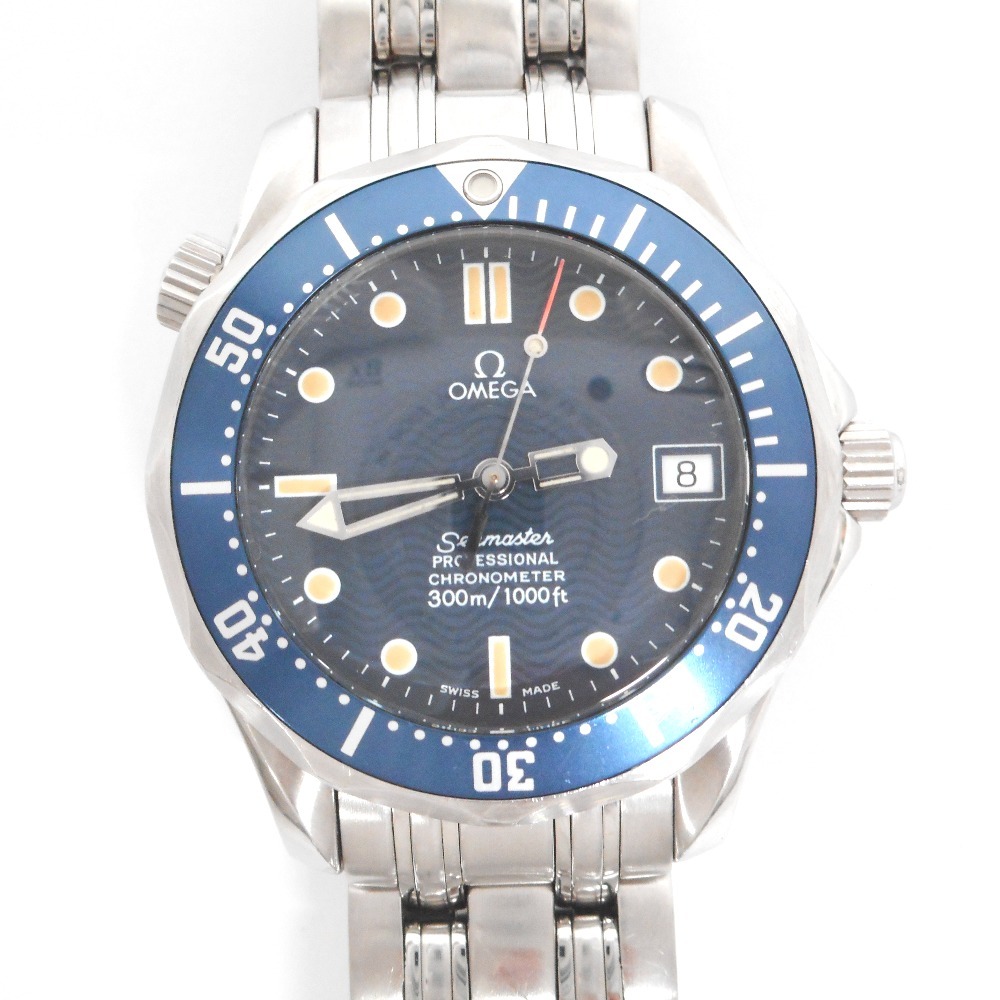 - ID344881 オメガ 腕時計 シーマスタープロフェッショナル 300m クロノメーター デイト SS 自動巻 紺文字盤 ボーイズ OMEGA 中古 現状品