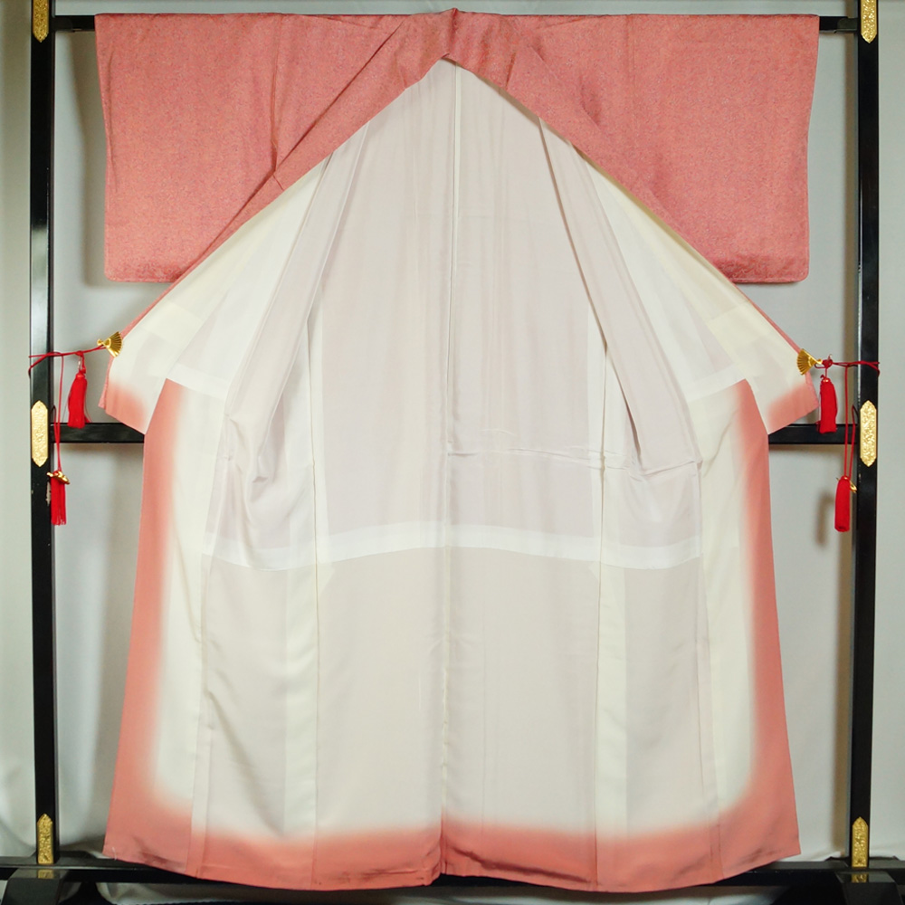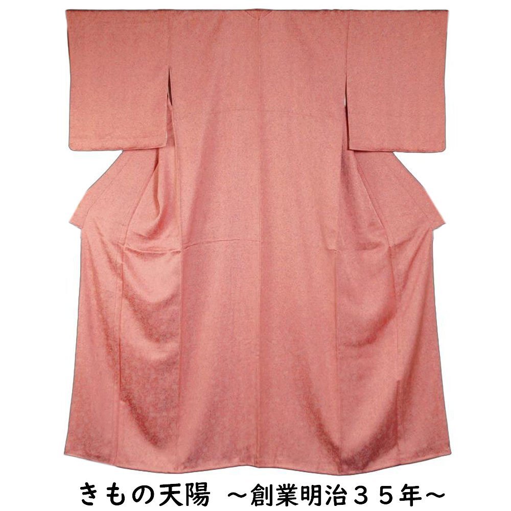 - 小紋 花唐草模様 地紋 地織 薄紅梅色系ぼかし Mサイズ 中古 小紋 リサイクル 着物 京都きもの天陽