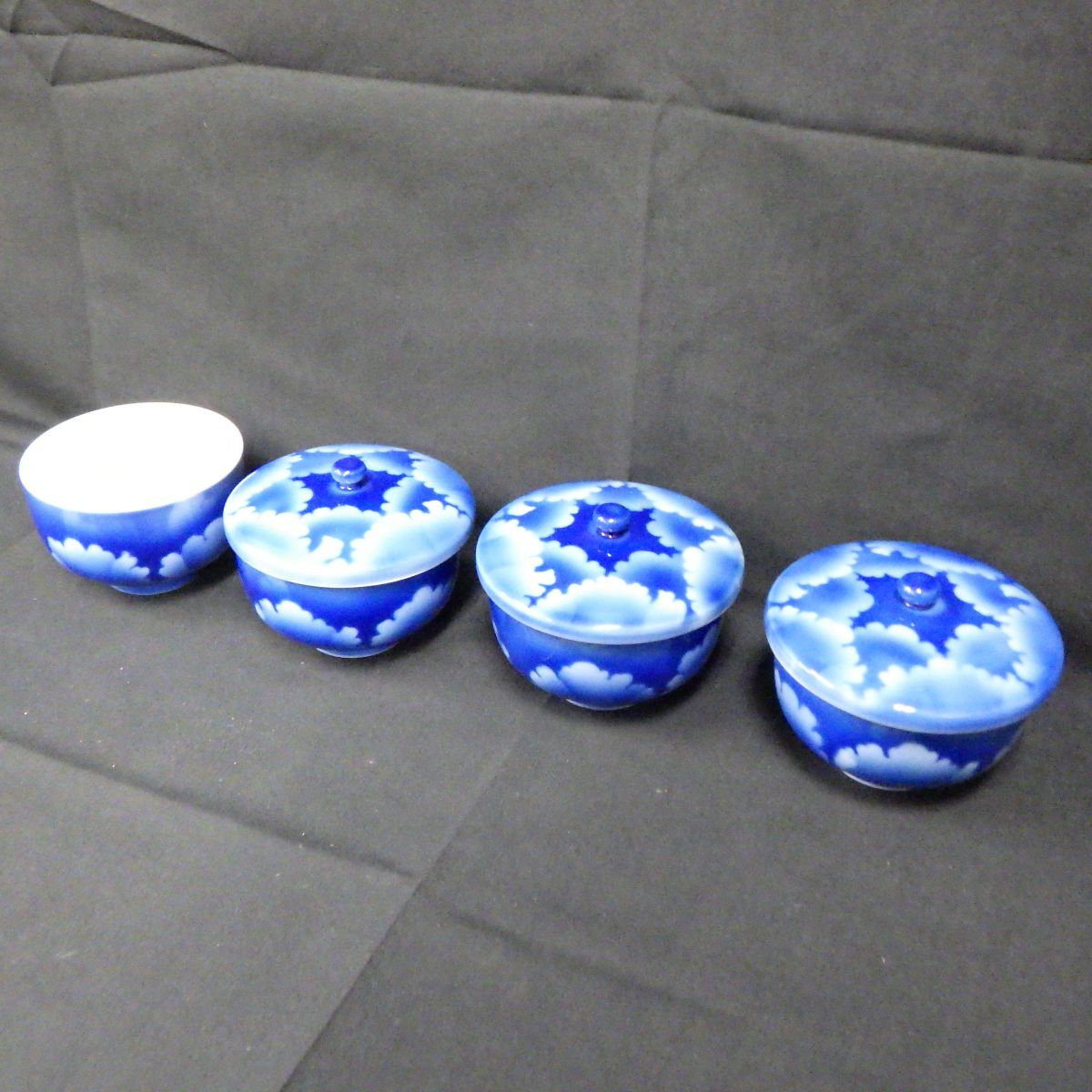 - 深川製磁 蓋付き湯呑み 4客セット 瑠璃