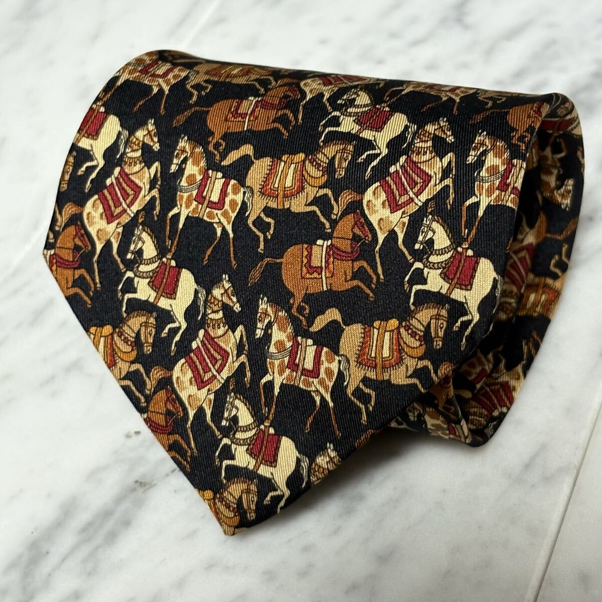 - 999円~ Ferragamo ネクタイ ブラック 馬柄 総柄 パターン柄 (GB1)