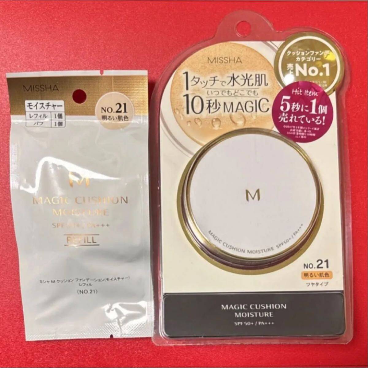 - 新品【本体+レフィル】ミシャ クッション ファンデーション モイスチャーNO.21 明るい肌色 【本体】+【レフィル】