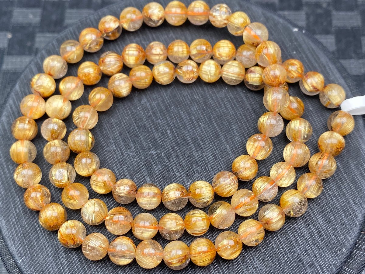 - 即決 0615k416 天然美品★【30A黄金タイチンルチル】★3重巻き 6.5-7mm 54cm(新品)