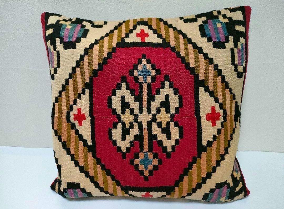 - L15-25 トルコ オールドキリム クッションカバー 50cm 大きめ レッド