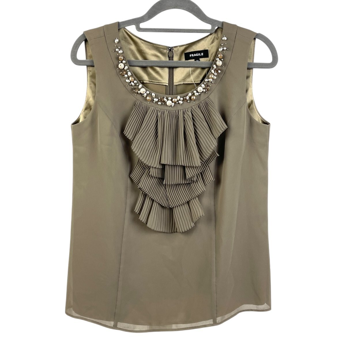 - A954●未使用■FRAGILE フラジール ■ビジューネック ノースリーブ プリーツフリル ブラウス■シャツ 38サイズ