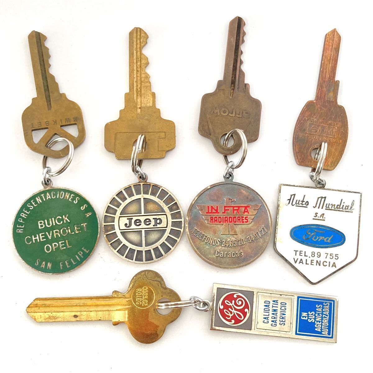 - 41当時物!1960年フォードjeepシボレー旧車☆ヴィンテージ輸出用エンブレムプレート金属製☆キーホルダー真鍮鍵キーセット ブラス鍵