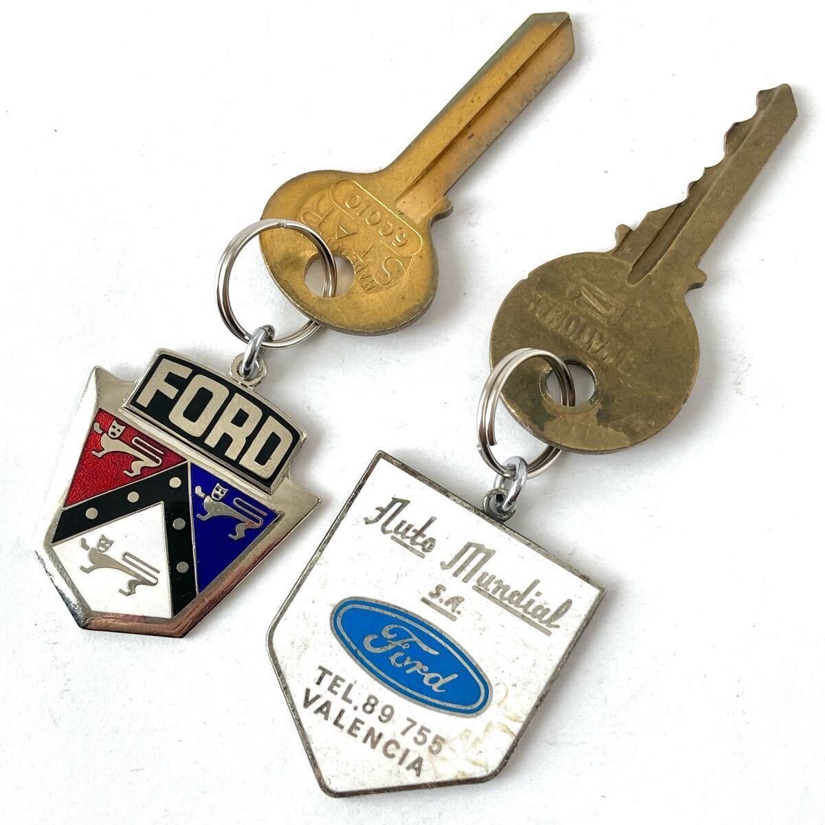 - 116当時物!1960年代フォードFORD旧車chevrolet輸出用エンブレムプレート金属製☆キーホルダー真鍮鍵キーセット ーカギ鍵ヴィンテージ