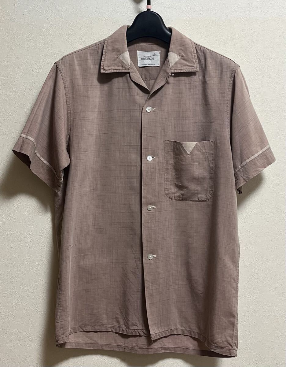 - 50〜60s TOWNCRAFT シャツ S 船タグ カスリ 絣 ツートン 半袖 ロカビリー 50s 60s ヴィンテージ CAMPUS PENNEYS TOWNCRAFT