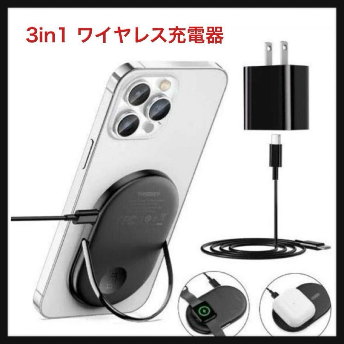 > 【新品】THREEKEY ★3in1 ワイヤレス充電器 Magsafe対応 薄型 充電器 スマホ iPhone ブラック
