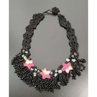- ブラック オヤ刺繍 ブラックビーズ ネックレス ストーン ピンク ベリーダンス