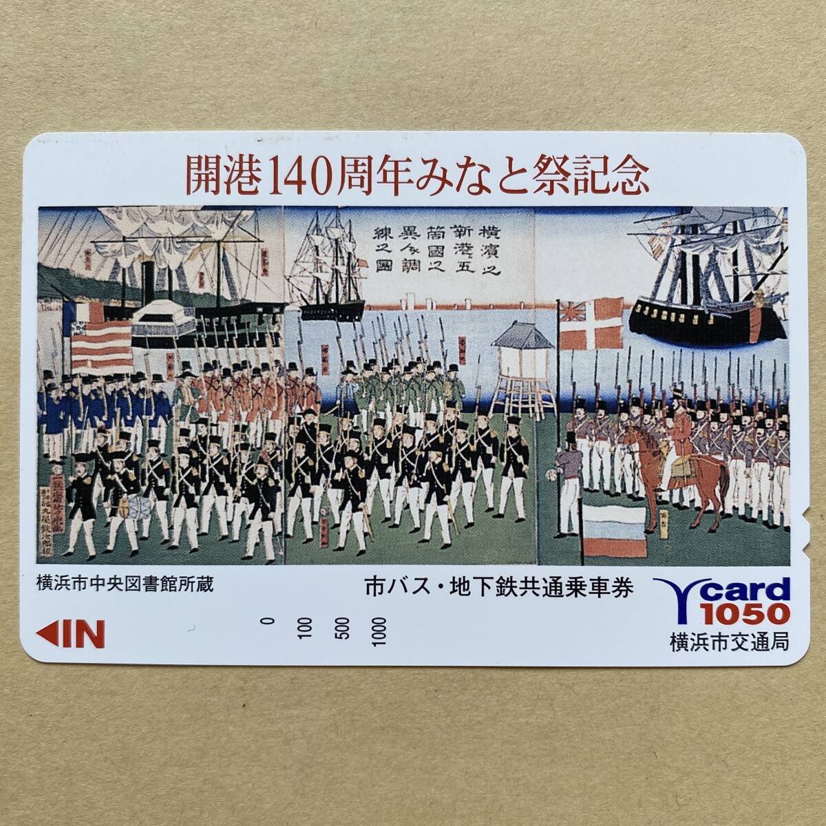 - 【未使用】 浮世絵Yカード 額面1,050円 横浜市交通局 横浜之新港ニ五箇国之 異人調練之図 歌川芳虎 開港140周年みなと祭記念