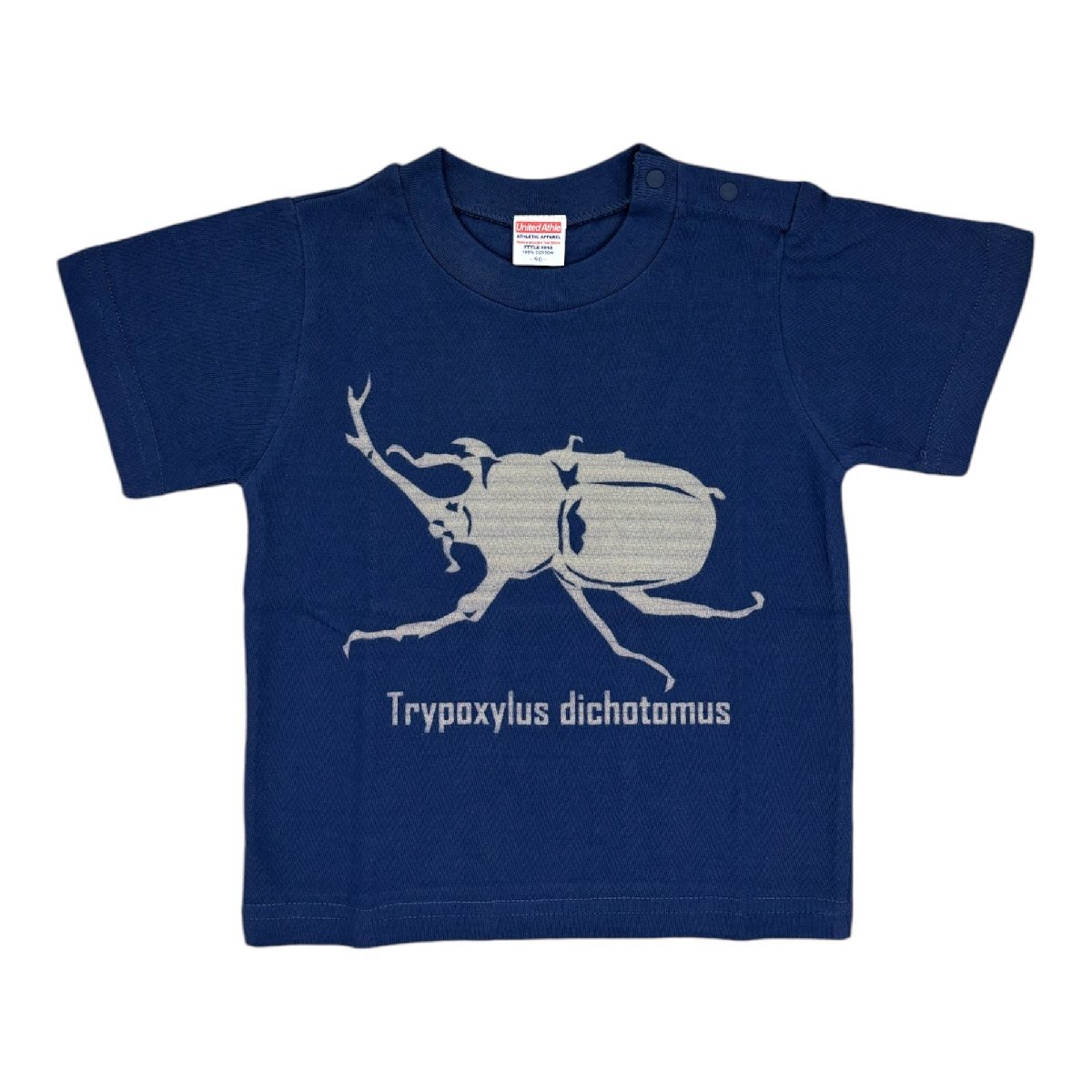 > [江戸てん]1点のみ 子供Tシャツ 前面に「カブトムシ」(背面は無地) 綿100% 抜染プリント キッズ インディゴ 90
