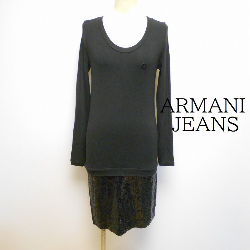 - 967512 ARMANI JEANS アルマーニジーンズ 黒 スパンコール ワンピース