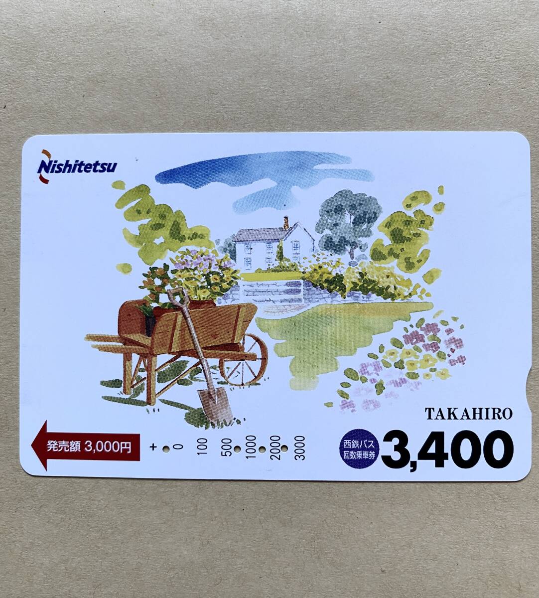 - 【使用済】 バスカード 西鉄バス TAKAHIRO イラスト