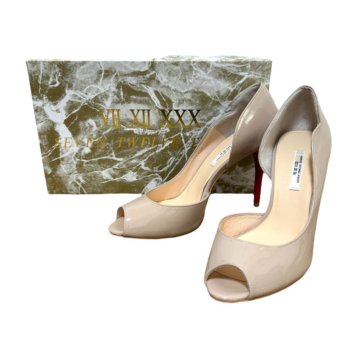 > ※P3 【箱付きほぼ未使用】VII XII XXX レザーヒールパンプス エナメル ピンヒール ベージュ 日本製 23cm