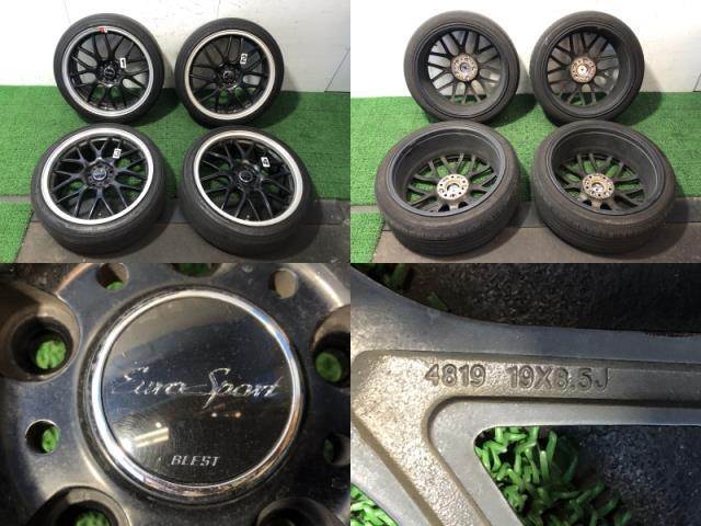 備考 | 社外アルミ 4本セット、19×8.5J、5穴 (1)曲り2X4cm擦傷多数(画像2参照)(2)(3)(4)擦傷少々(画像3.4.5参照) 19インチ 225/40R19 ヨコハマ ブルーアース 20年 (1)2.60mm(2)1.88mm(3)1.92mm(4)1.99mm 劣化ヒビあり |