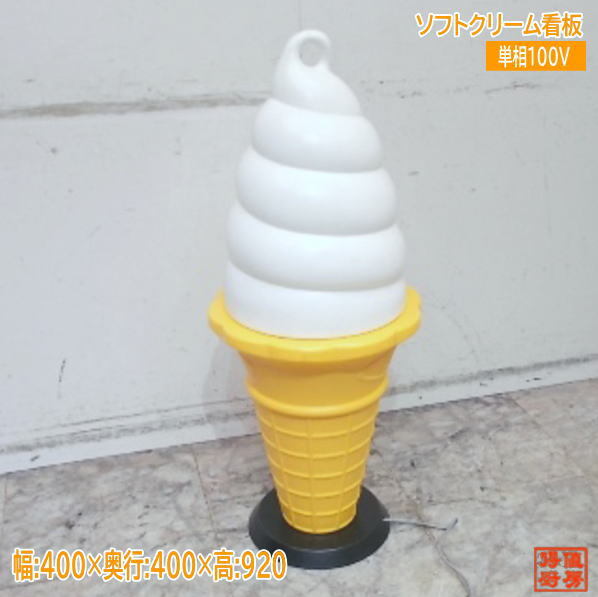- ソフトクリーム看板 φ400×920 店舗用カンバン 中古厨房/25H2718Z
