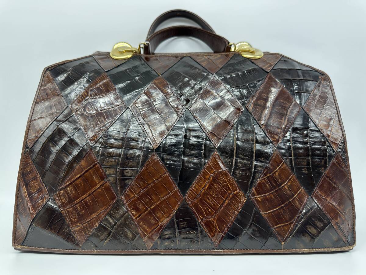 - ●91224 クロコダイル レザー ハンドバッグ ブラウン ノーブランド