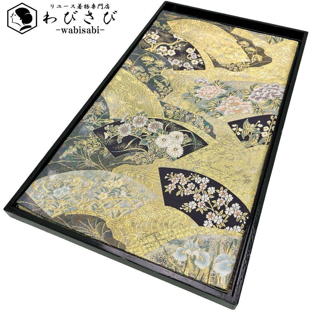 > 袋帯 地紙に四季の花柄模様 波模様 金糸 フォーマル O-4418 着物 きもの kimono 和服 和装 中古 リサイクル着物 【送料無料】