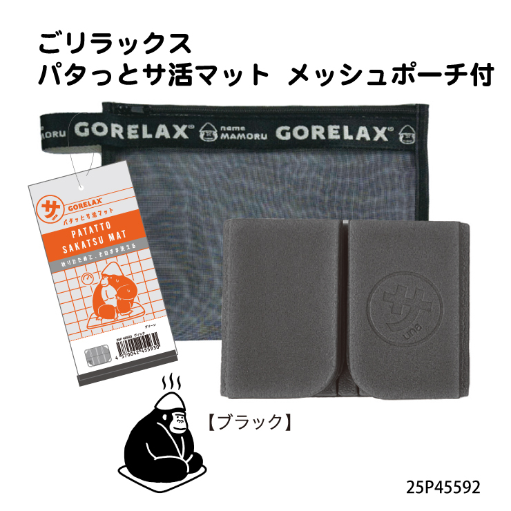 > ごリラックス パタッとサ活マット ブラック□25P45592□新品 メッシュポーチ付 サウナマット 銭湯 岩盤浴 GORELAX ごりらっくす Z2