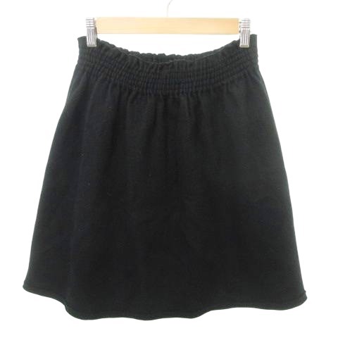 > ズッカ zucca 美品 ウール スカート ひざ丈 フレア ウエストゴム 無地 厚手 Mサイズ 黒 ブラック ■YHS3 レディース