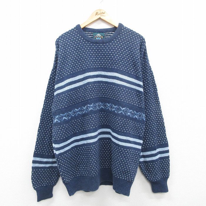 > XL/古着 ジャンセン 長袖 セーター メンズ 90s コットン クルーネック 紺 ネイビー 24oct09 中古 ニット トップス