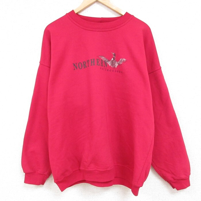 - XL/古着 長袖 スウェット メンズ 00s 鳥 大きいサイズ クルーネック エンジ 23dec12 中古 スエット トレーナー トップス
