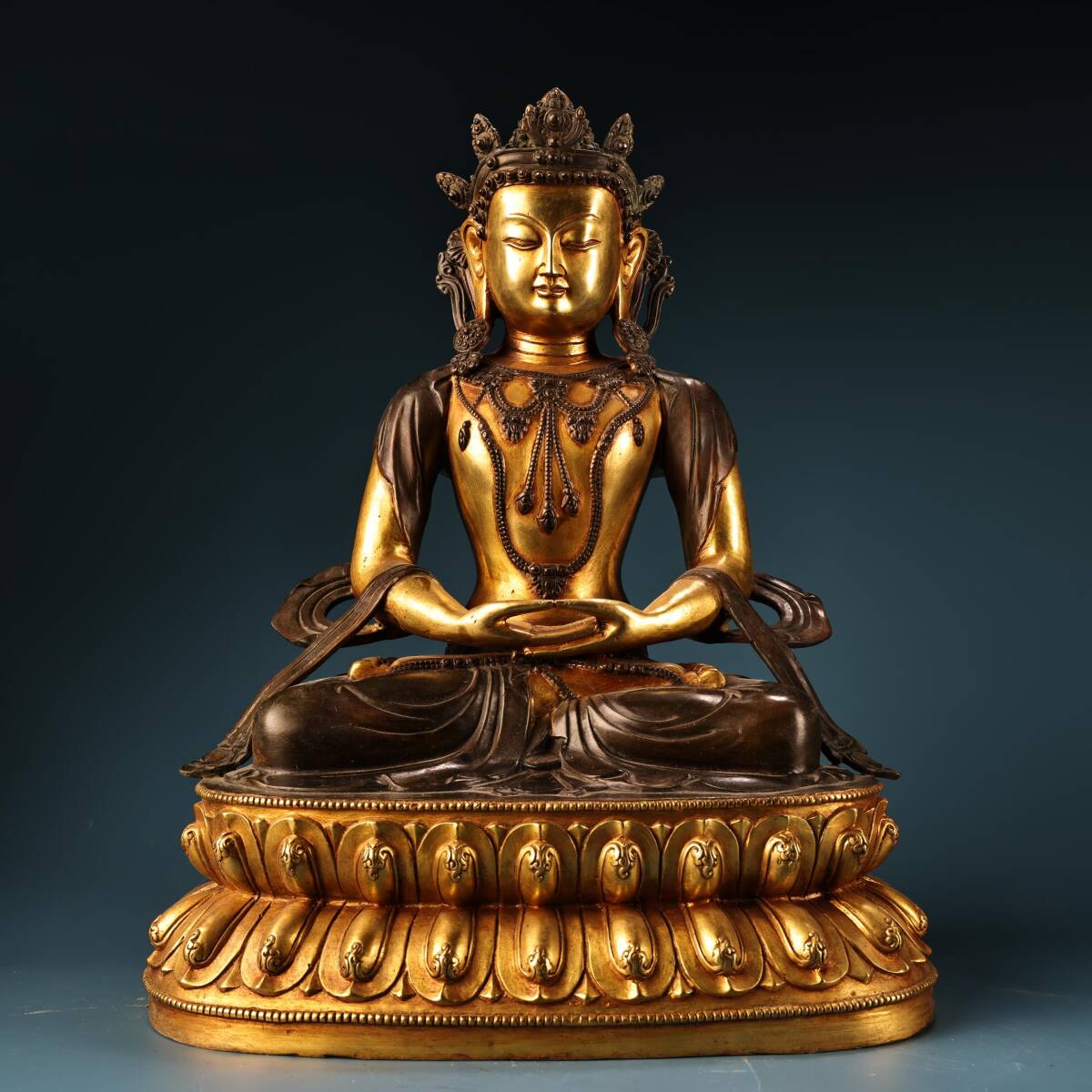 - 旧 清代 宗教仏像 純銅全銅 鍍金彫り 長寿仏仏像 古家具 中国古美術 古賞物 古置物 唐物 S79
