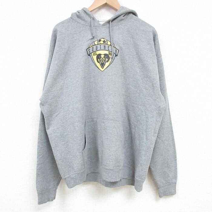 > L/古着 ジャージーズ 長袖 スウェット パーカー メンズ 00s SOUTHERN サッカーボール クルーネック グレー 霜降り 25mar15