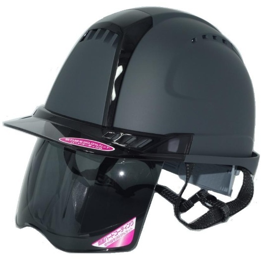 ・材質:帽体はABS、ひさし・通気孔カバー・シールドレンズはポリカーボネート