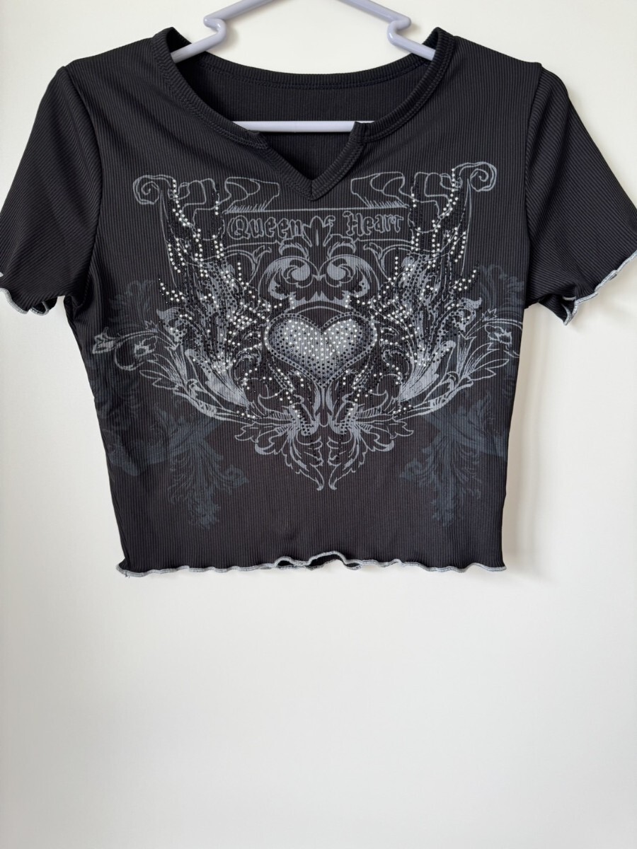 - 半袖 Tシャツ Vネック 黒 ミニ丈 クロップド丈