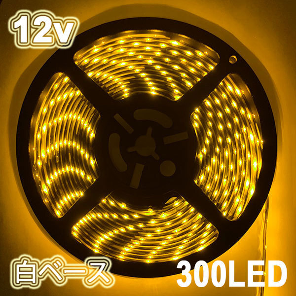 - LEDテープライト 300連 12v 防水 5m イエロー正面発光 白ベース 送料無料