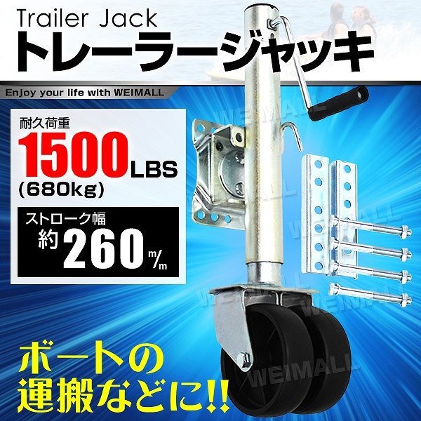 - 新品未使用 トレーラージャッキ 耐久荷重680kg 1500LBS ハンドトレーラー ダブルタイヤ 運搬 キャンピングカー ボート ジェット トレーラー