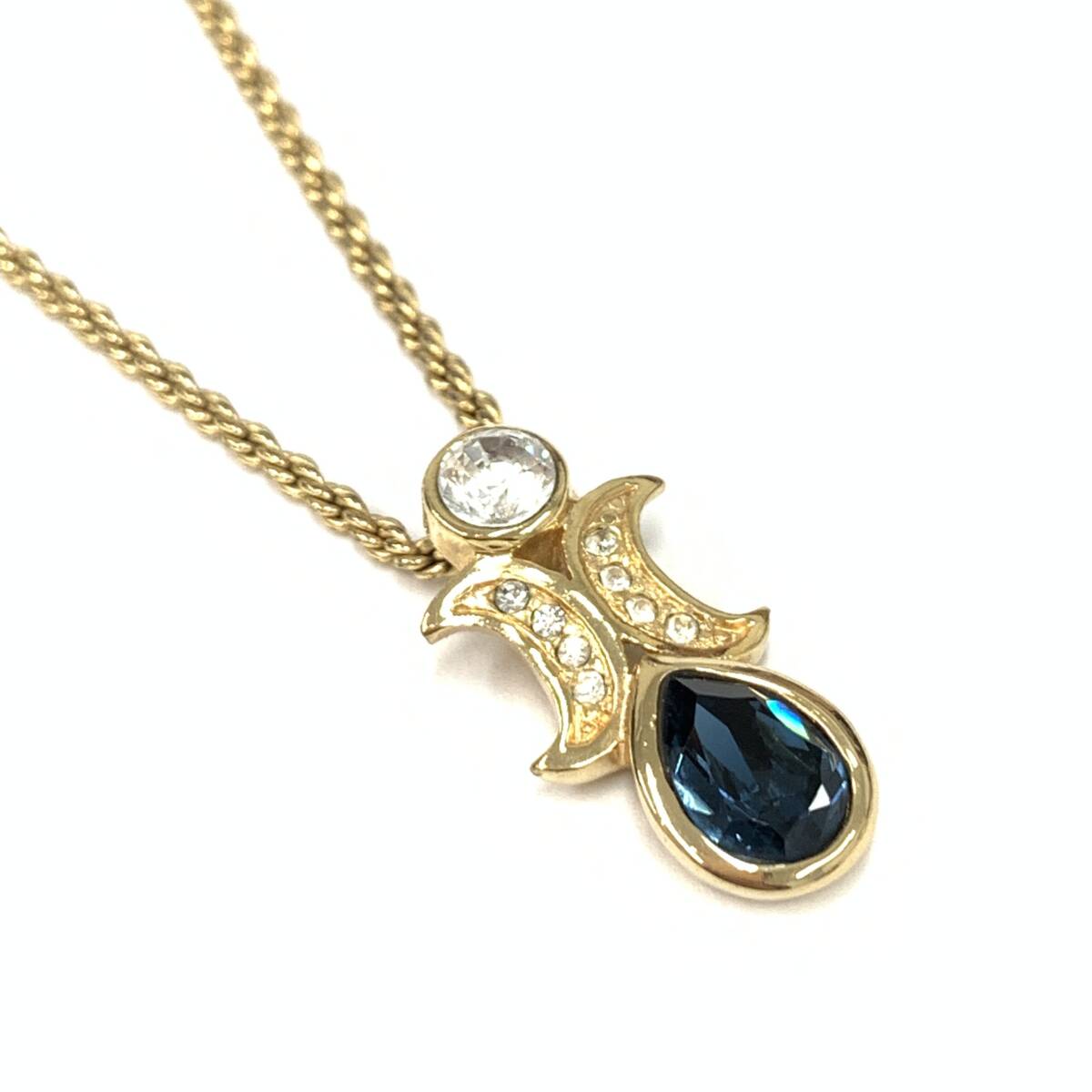 - D2542 美品! 格安! Christian Dior クリスチャン ディオール カラーストーン 1P ラインストーン ネックレス GP ゴールド アクセサリー