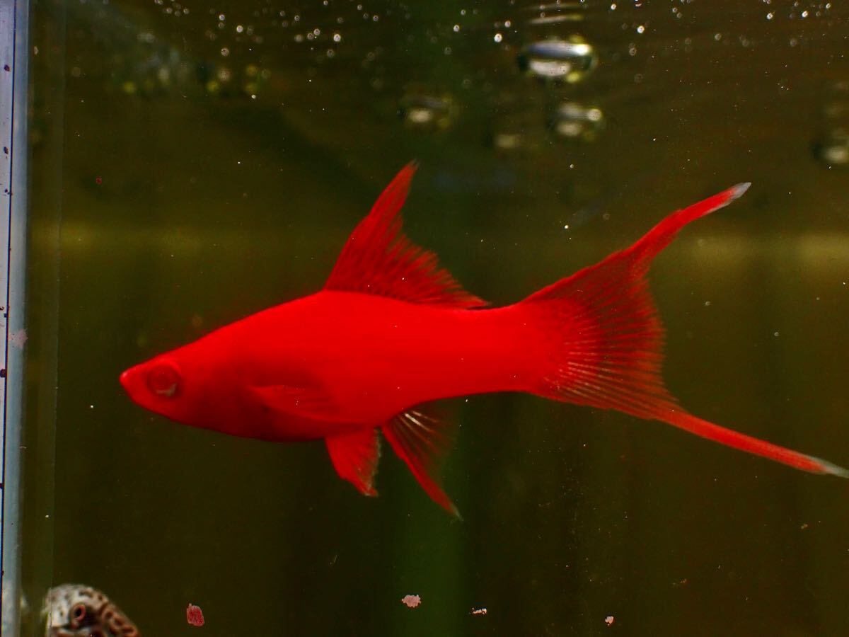 > 【アクアリウムのある暮らし】(熱帯魚) リアルレッドアイタンジェリンハイフィンライヤーソード 10匹 サンプル画像 ソードテールフィッシュ