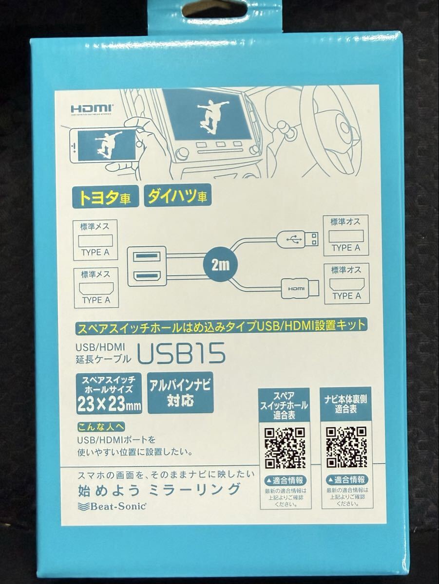 > BeatーSonic ビートソニック USB HDMI延長ケーブル USB15 トヨタ ダイハツ専用 2m 薄型コネクター 採用 アルパインナビ対応 新品 未開封