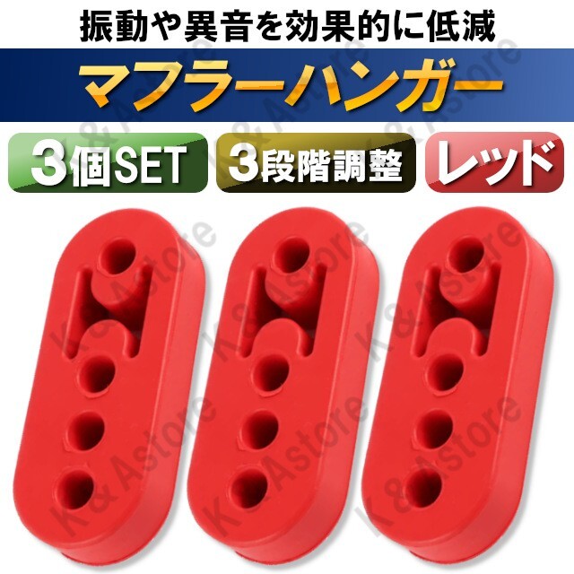 > マフラーハンガー ブッシュ 強化 吊りゴム マウント リング サイレンサー 自動車 衝撃吸収 振動低減 3段階調整 4ホール 4穴 3個 赤 レッド