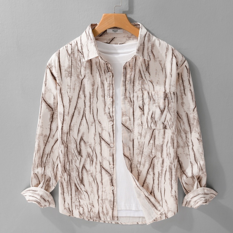 - 長袖シャツ 春秋服 トップス 新品★メンズ シンプル 開襟シャツ カジュアルシャツ コットンシャツ【3122】珈琲色 2XL