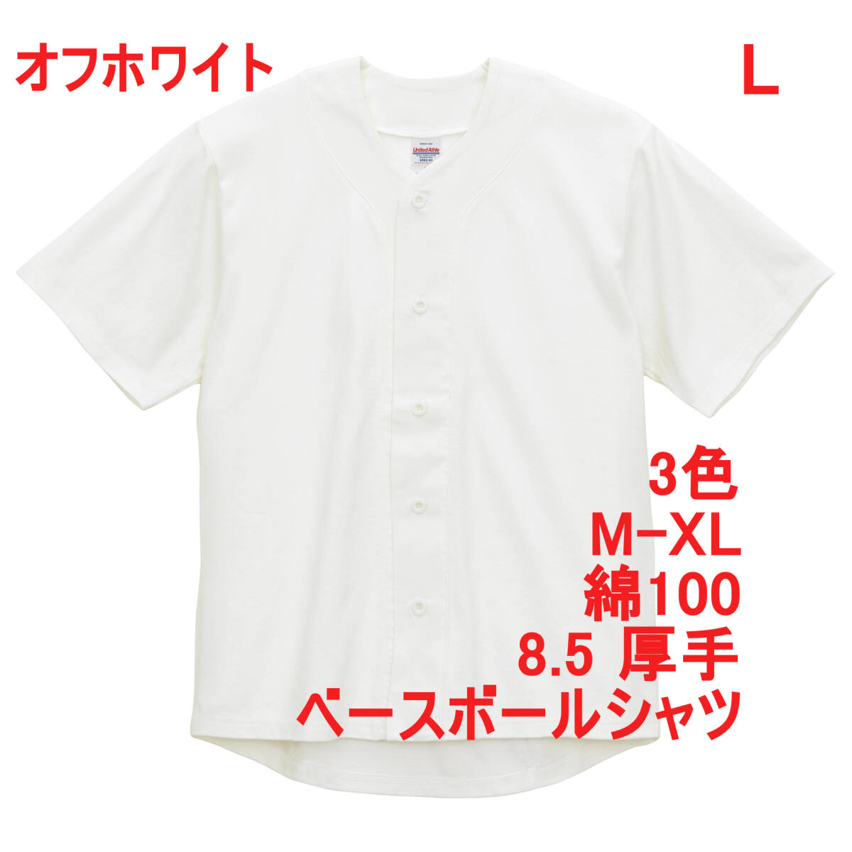 - 【訳有】 498201 L オフホワイト ベースボールシャツ 野球 ユニフォーム 半袖シャツ 無地 8.5オンス コットン 綿100 ユナイテッドアスレ