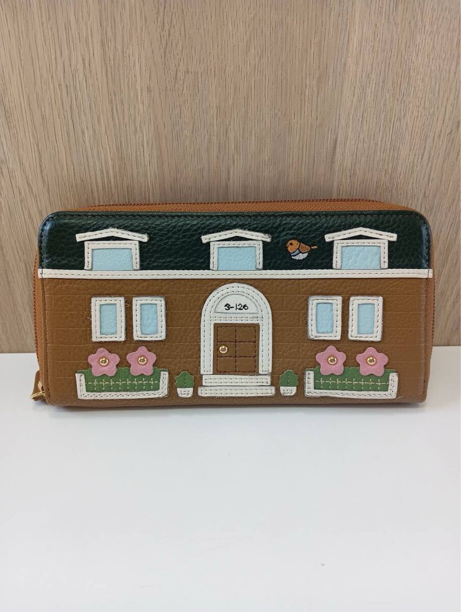 - 【中古品】Kitamuraキタムラ お家と黒猫 ラウンドジップ 長財布 茶ブラウン ファッション小物 財布 現状品