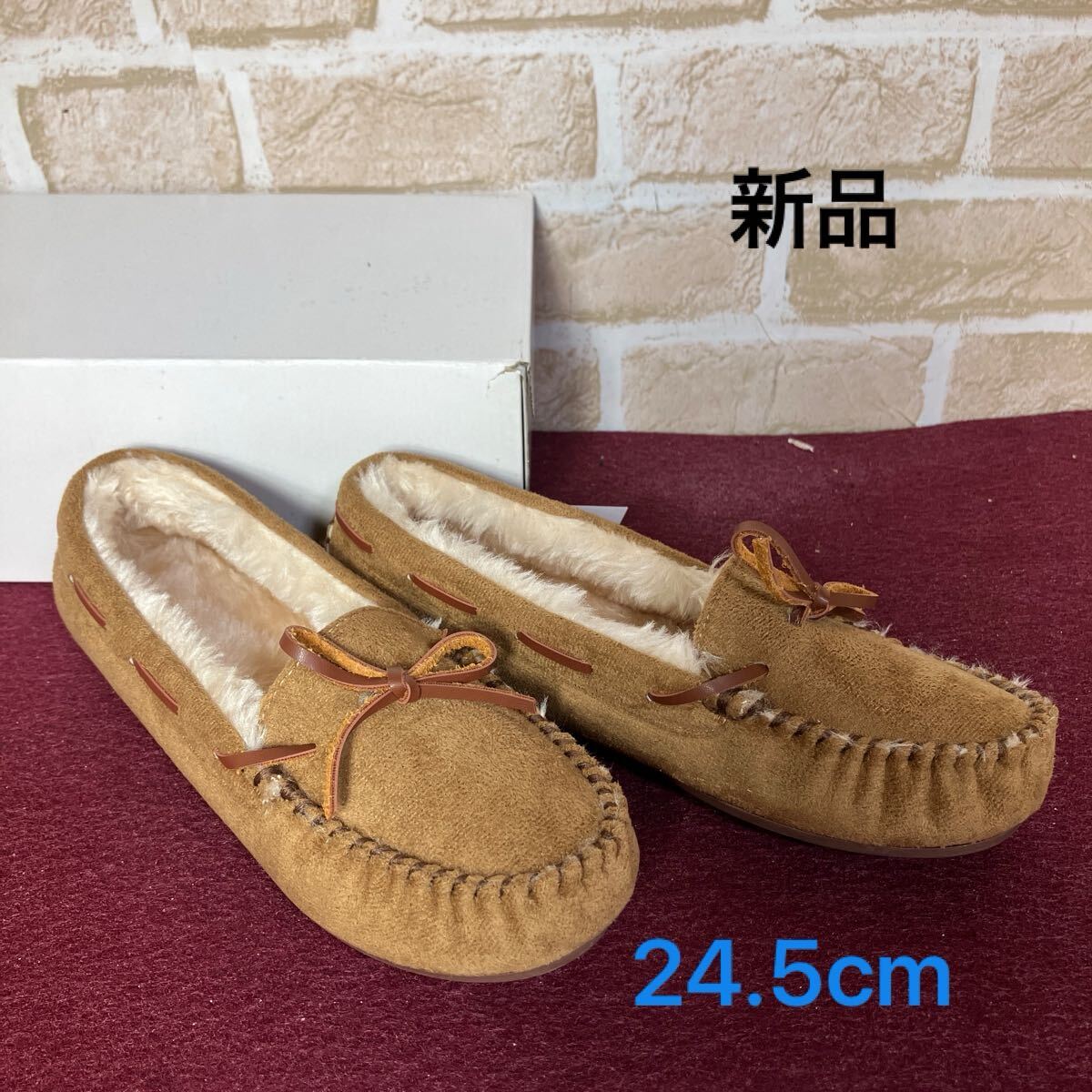 - 【売り切り!送料無料!】A-336 モカシン!キャメル!茶色!24.5cm!ファー付き!暖かい!おしゃれ!新品