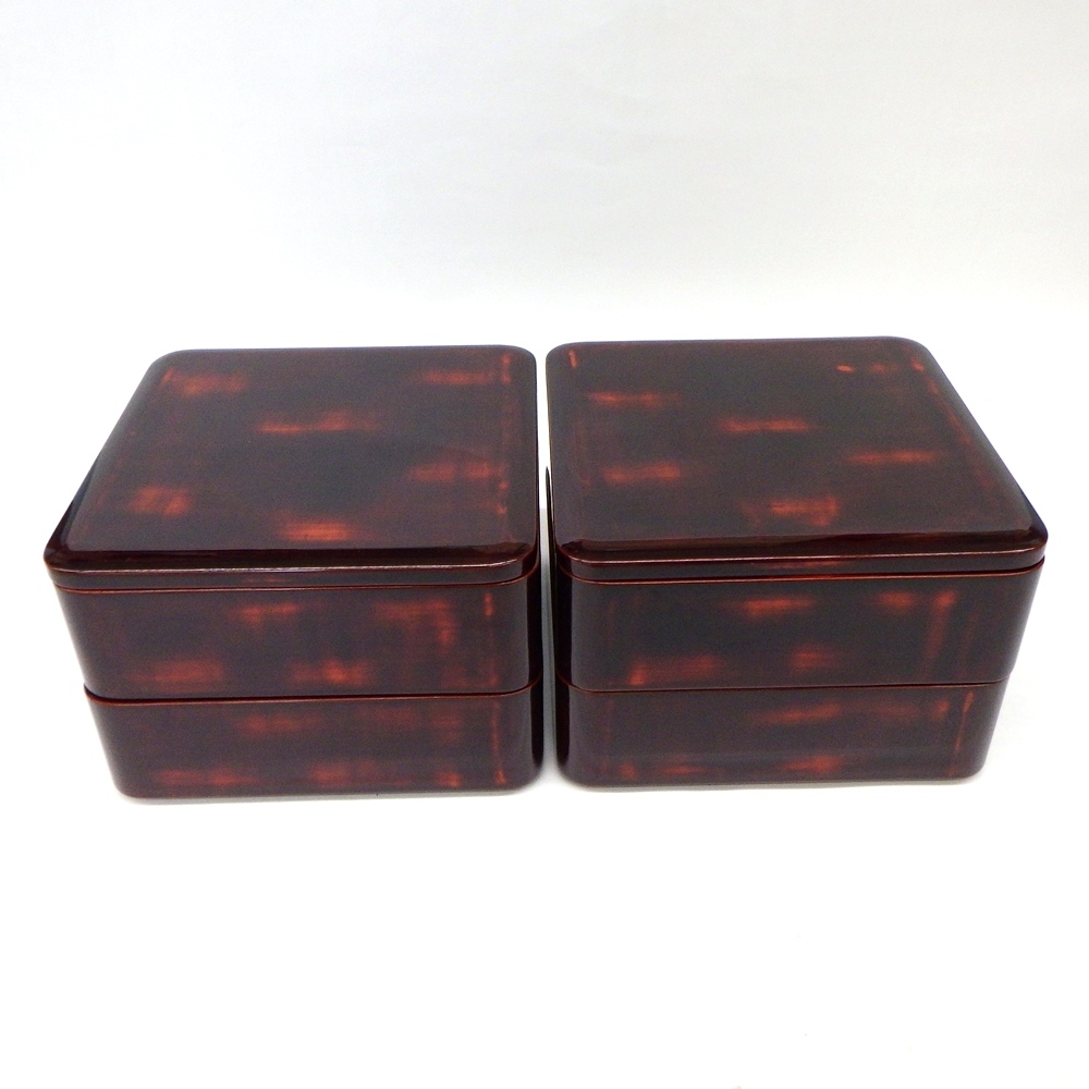 - A25-1835【2点セット】輪島塗 宮野茂平 茂平 重箱 お重 2段 二段 四段にも 曙塗 曙 紙箱つき おせち 菓子器 能登輪島 保管品