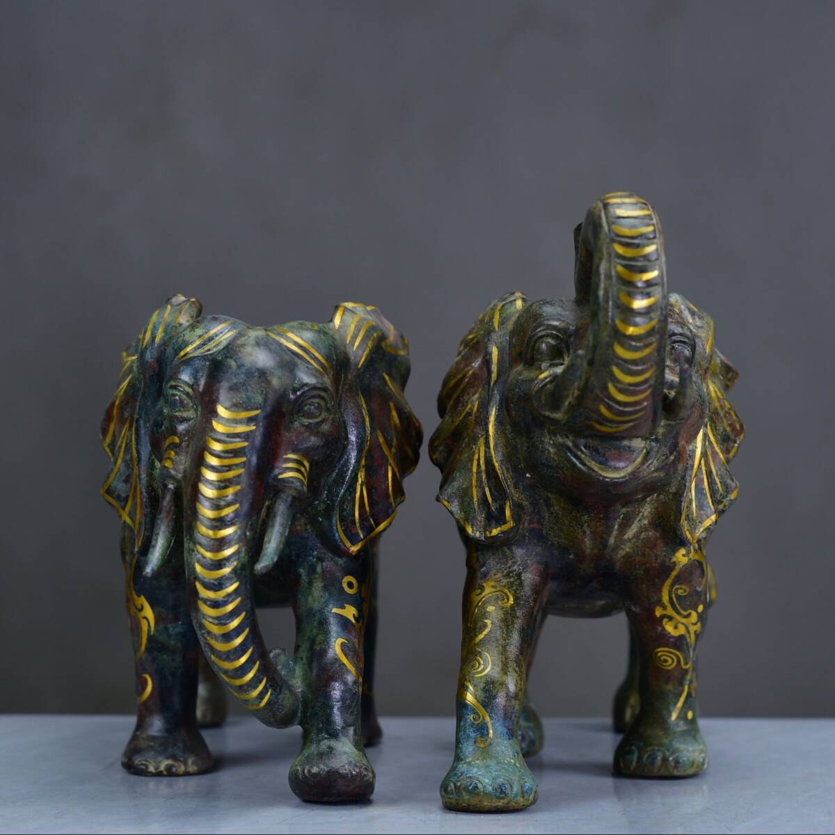 - 【超珍館蔵】春秋 青銅製 錯金對象 青銅器 置物 賞物 古賞物 古董品 古美術品 時代物 旧家蔵出 稀少珍蔵品