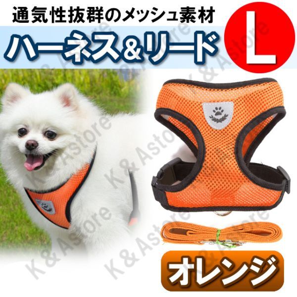 - ハーネス リード メッシュ ペット 犬用 猫用 散歩 抜けない 脱げない 首輪 胴輪 超小型犬用 小型犬用 Lサイズ 橙 オレンジ